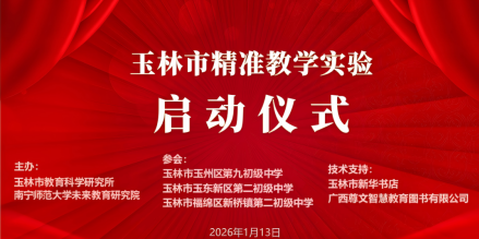 2026年1月13日,由玉林市教育科学研究所主办、南宁师范大学未来教育研究院深度参与的玉林市精准教学实验启动仪式在玉林市教育科学研究所顺利举行。南宁师范大学未来教育研究院相关负责人和教研人员受邀出席,与玉林市教育科学研究所、技术支持单位及首批实验学校代表共同见证精准教学实验在玉林市正式启动。